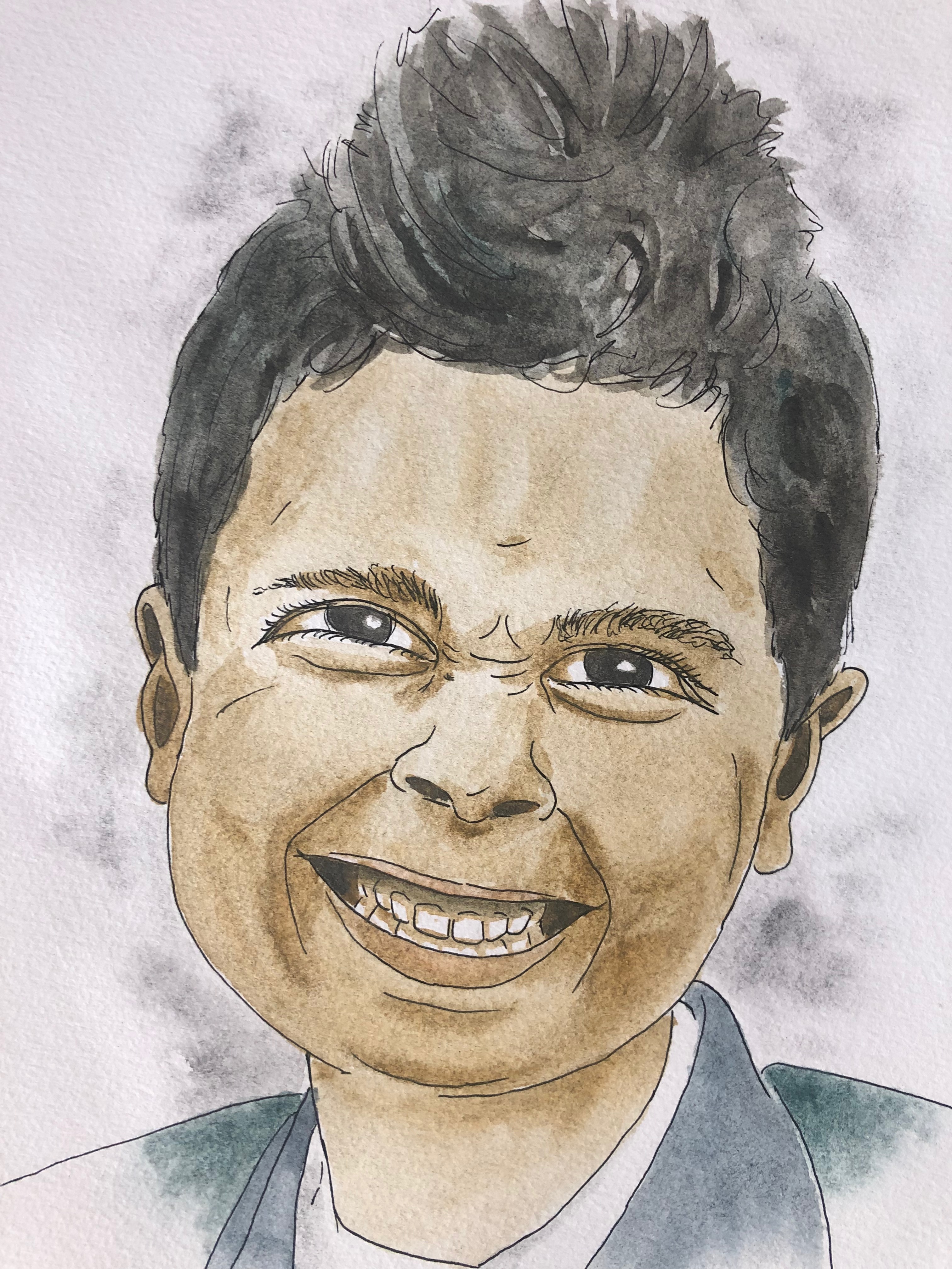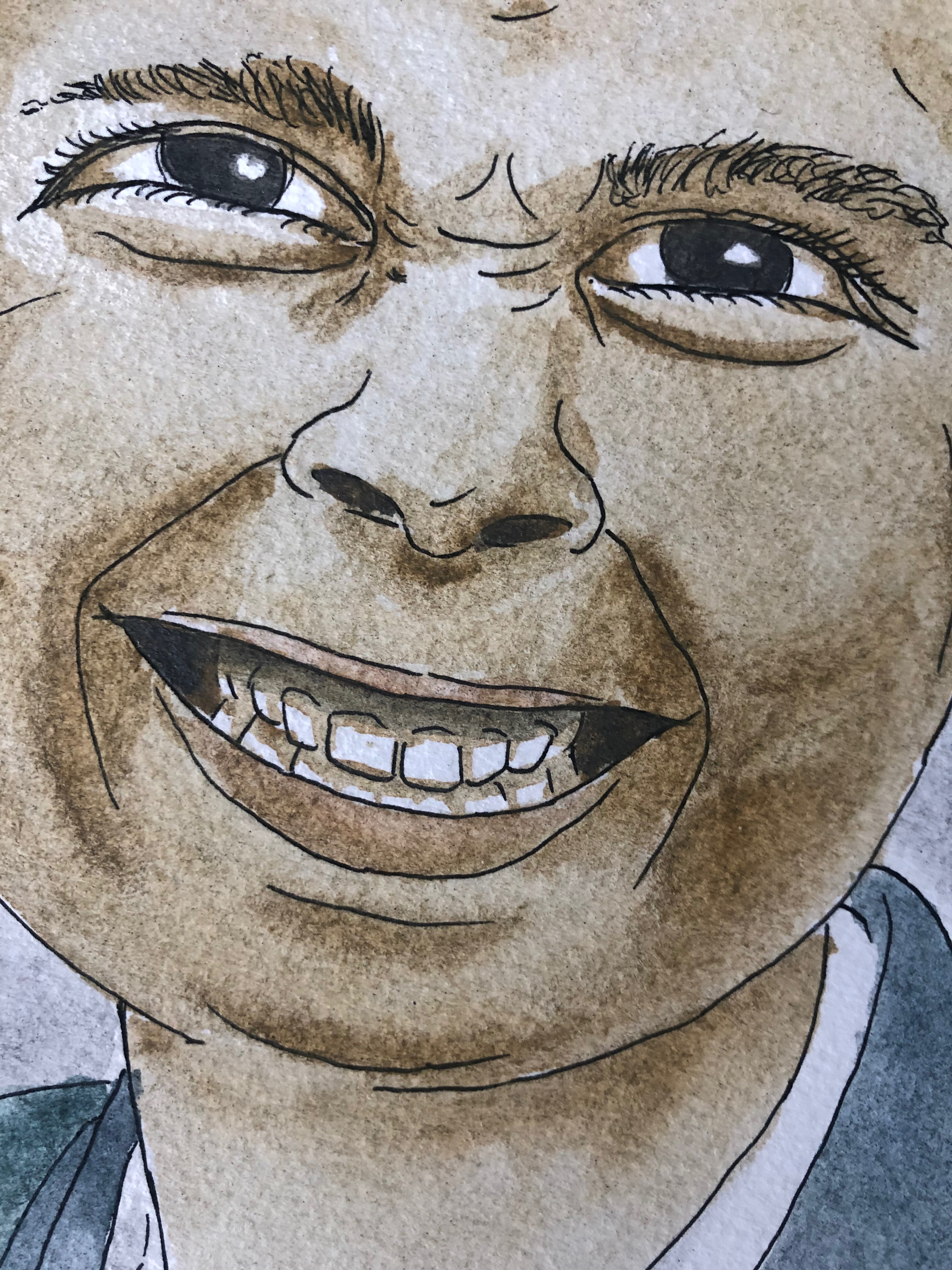 I used a pencil, a Uniball Vision pen, Derwent Graphitint Watercolors, and Derwent Waterbrushes for this painting.
