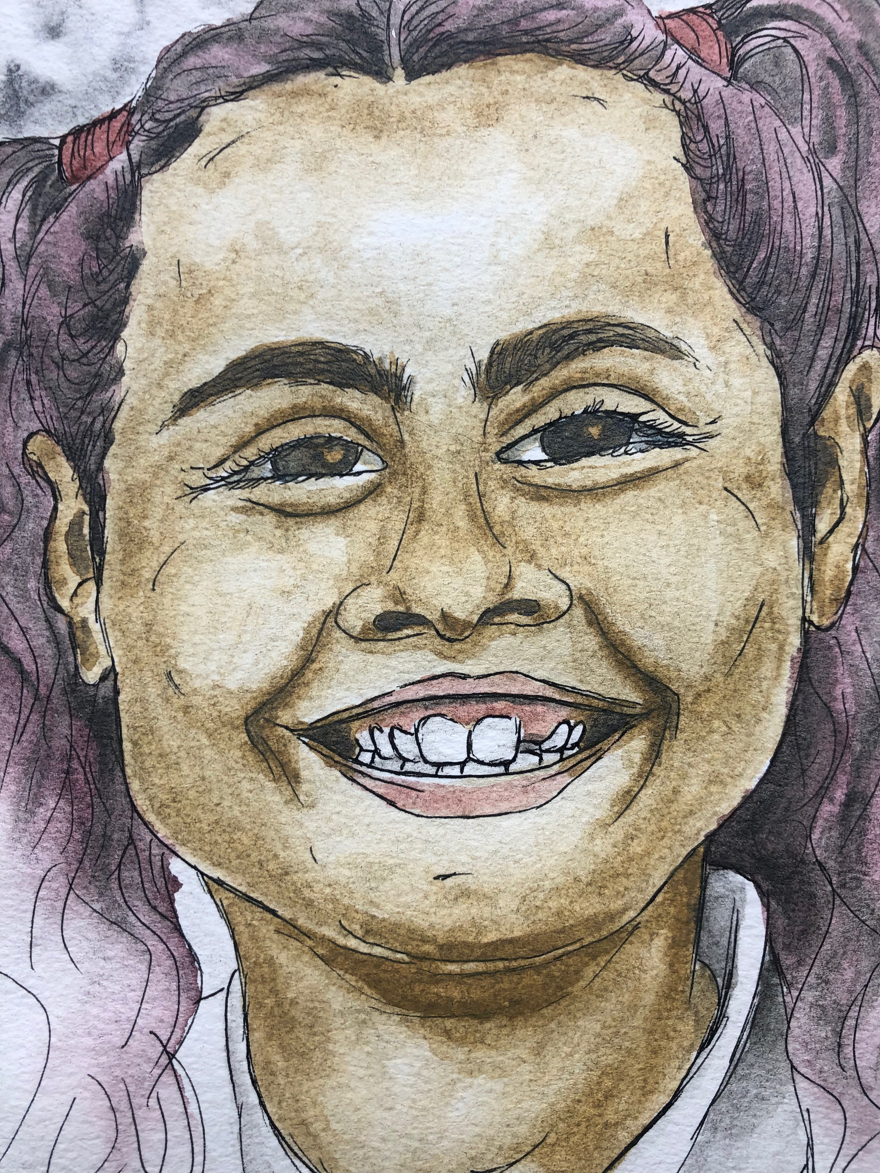 Similar to what I did for Sam, I made a little portrait of Vivian from her first day of school. She loves that her hair looks a little reddish/purple as she really wants to dye her hair. Oh, and shave it on one side to get it swooping over the other. π
